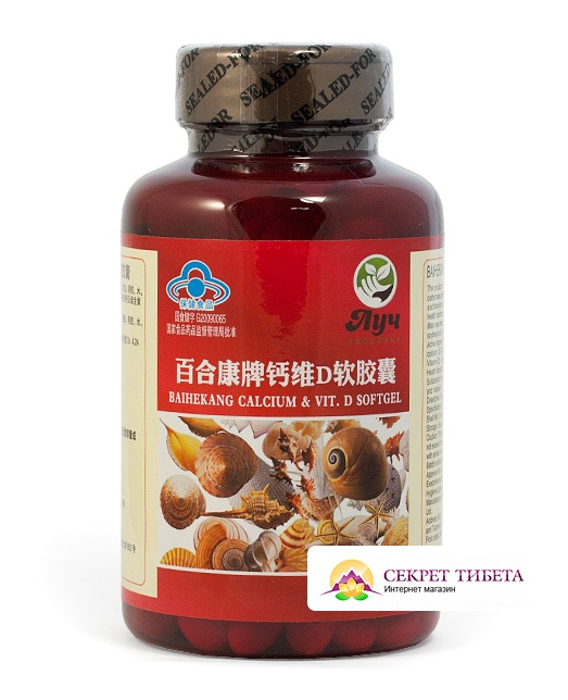 Капсулы "Кальций + Витамин D3" (Calcium and Vitamin D) Baihekang brand представляет собой БАД, изготовляемый из кальция, витамина D 3 и ракушек жемчуга. В ходе функциональных испытаний было доказано, что препарат обладает свойством восполнять недостаток кальция и витамина D в организме человека. Кальций является основным веществом, которое формирует костную ткань и зубы. Вымывание кальция из организма может приводить к размягчению костей и их переломам. Недостаток кальция у детей приводит к замедлению их роста, умственной и физической отсталости, снижению иммунитета. Витамин D3 помогает организму усваивать кальций, он «транспортирует» кальций в нужное место, повышая эффект, поэтому прочность нашего скелета и правильная форма костей зависят от содержания витамина D. Это особенно важно для женщин, так как они теряют больше кальция, чем мужчины, когда вынашивают и кормят грудью детей. Если витамина D женщине не хватает, то с возрастом у неё развивается остеопороз – очень опасное заболевание, при котором кости истончаются и становятся хрупкими. | Характеристики товара: Действие: