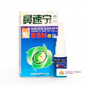 Назальный спрей BSN (Fengjiao Bi Penji) на лечебных травахПодробное описание товара: Спрей BSN (Fengjiao Bi Penji), основанный на традиционных сборах медицины Китая, помогает бороться с насморком, заложенностью, синуситами и ослаблениями обоняния. Действие препарата также распространяется на аллергические риниты и чихания. В основе препарата находятся такие сборы как: магнолия лилиецветковая, ментол, корень дикорастущего пиона и др. Аэрозоль BSN (Fengjiao Bi Penji) не рекомендуется беременным и людям, у которых имеется индивидуальная непереносимость к составным частям препарата. Назальный спрей BSN (Fengjiao Bi Penji) - китайский лечебный спрей для носа. Показания к применению: ринит, синусит, заложенность носа вследствие аллергического ринита, насморк, чихание, ослабление обоняния. Действующий стандарт: Q/FC081-2012. Медико-санитарная лицензия: Медицинская лицензия выдана в пров. Шэньси [2010], №0090.. Производственное предприятие: ООО «Сианьская фармацевтическая компания Фоцы», ул. Эфани 19, район Вэйян, г. Сиань, пр. Шэньси, КНР. | Характеристики товара: Показания к применению: